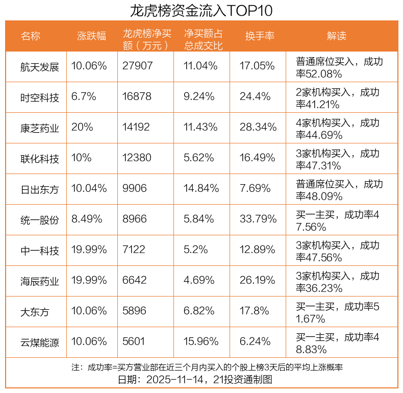 (原标题:2.79亿资金抢筹航天发展开云kaiyun体育,机构狂买时空科技丨龙虎榜)